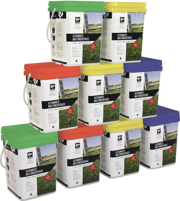 Long lasting marking liquid suited to outdoor ground marking. High dilution rate up to one liquid to eight water. Easy to handle 10 litre buckets. One container marks about two soccer/football fields. Lasts from four to eights weeks depending on application strength. Excellent adhesion and wear resistance. Long storage life.