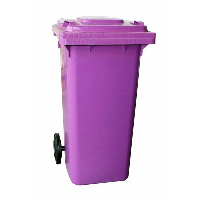 Commercial standard wheelie bin with 120 litre capacity measures 930mm(H) x 480mm(W) x 545mm(D).