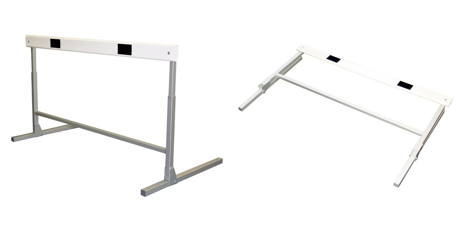 Little Athletics hurdle made from 25mm anodised aluminium Collapsible for both safety and ease of storage. Hurdles are height adjustable to 45cm, 60cm, 68cm and 76cm. Baton is made from White PVC with two black markings on facing side of baton. Length 1060mm. Fully assembled.