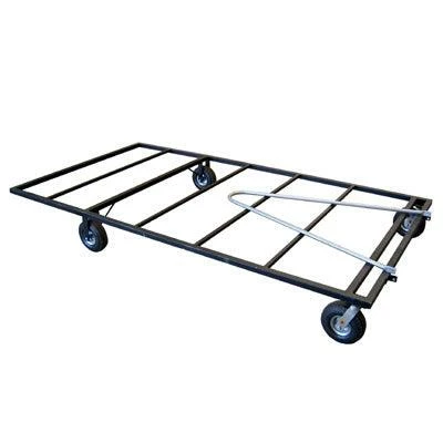 Made of steel, this trolley comes with 220mm pneumatic wheels front set swivel. Suitable as an equipment trolley or mat trolley.