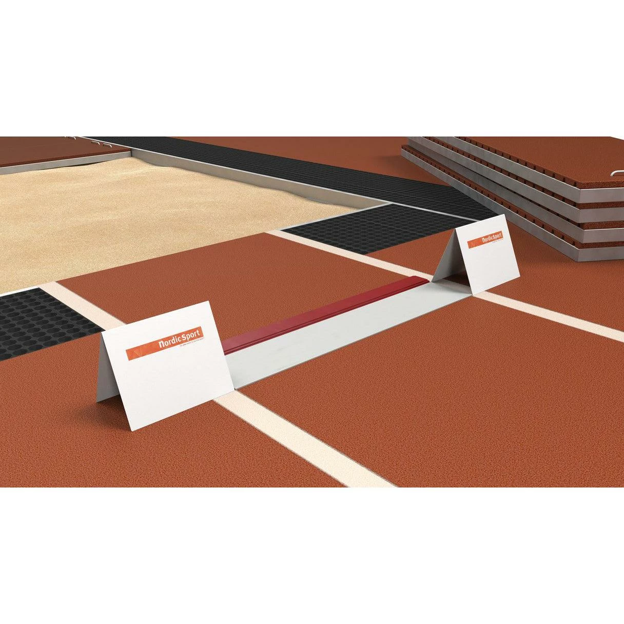 Folded “A” frame markers that are placed adjacent to the long jump take off board. Provides an extra visual indicator as to where board is for competitor. Each marker stands 210mm high with each face 250mm x 240mm.